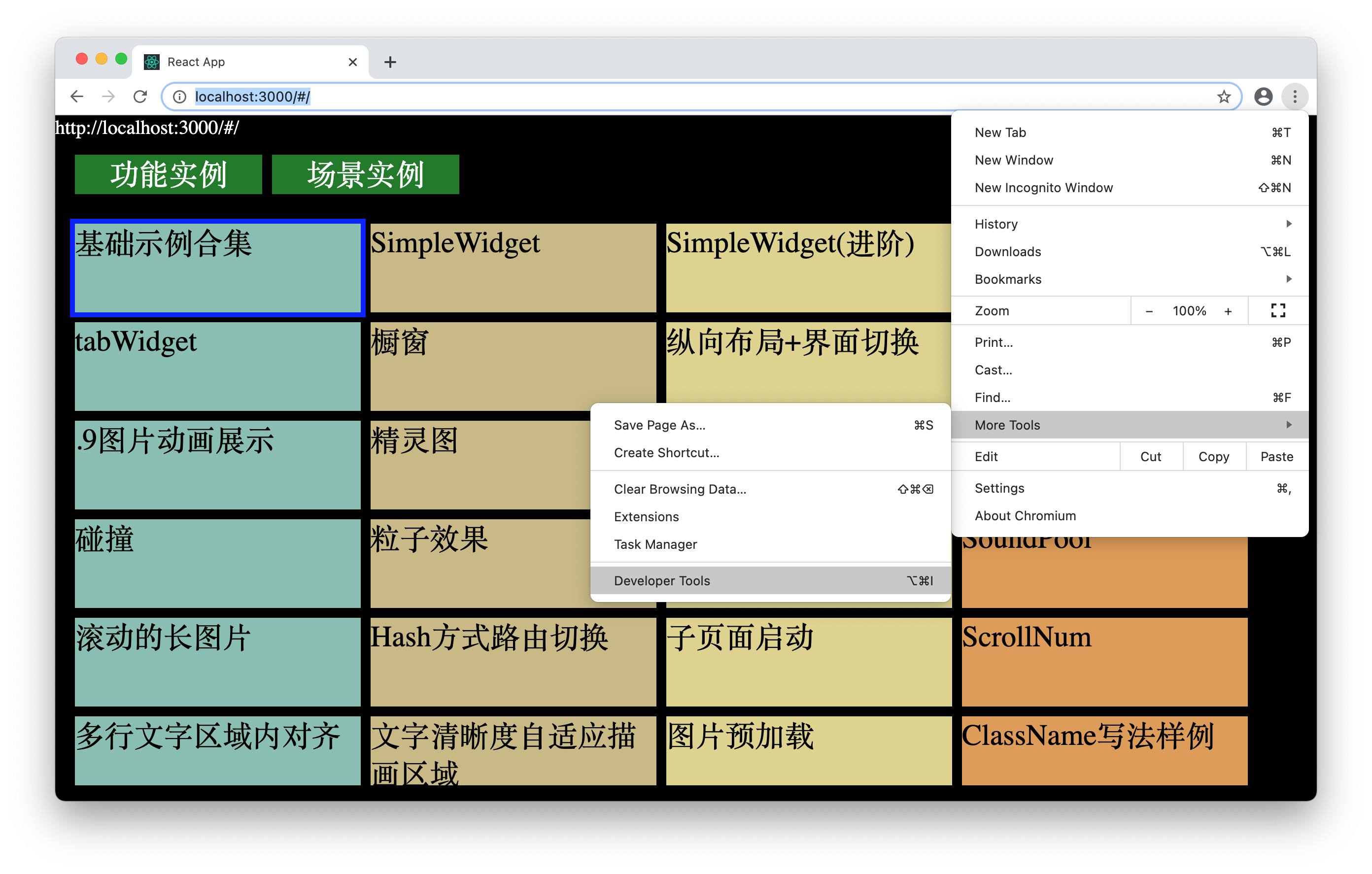 http://localhost:3000(Vue3默认为http://localhost:5173) - (3) 点击右键选择 [Inspect] 或通过 [菜单] -> [More Tools] -> [Developer Tools] 打开 DevTools。