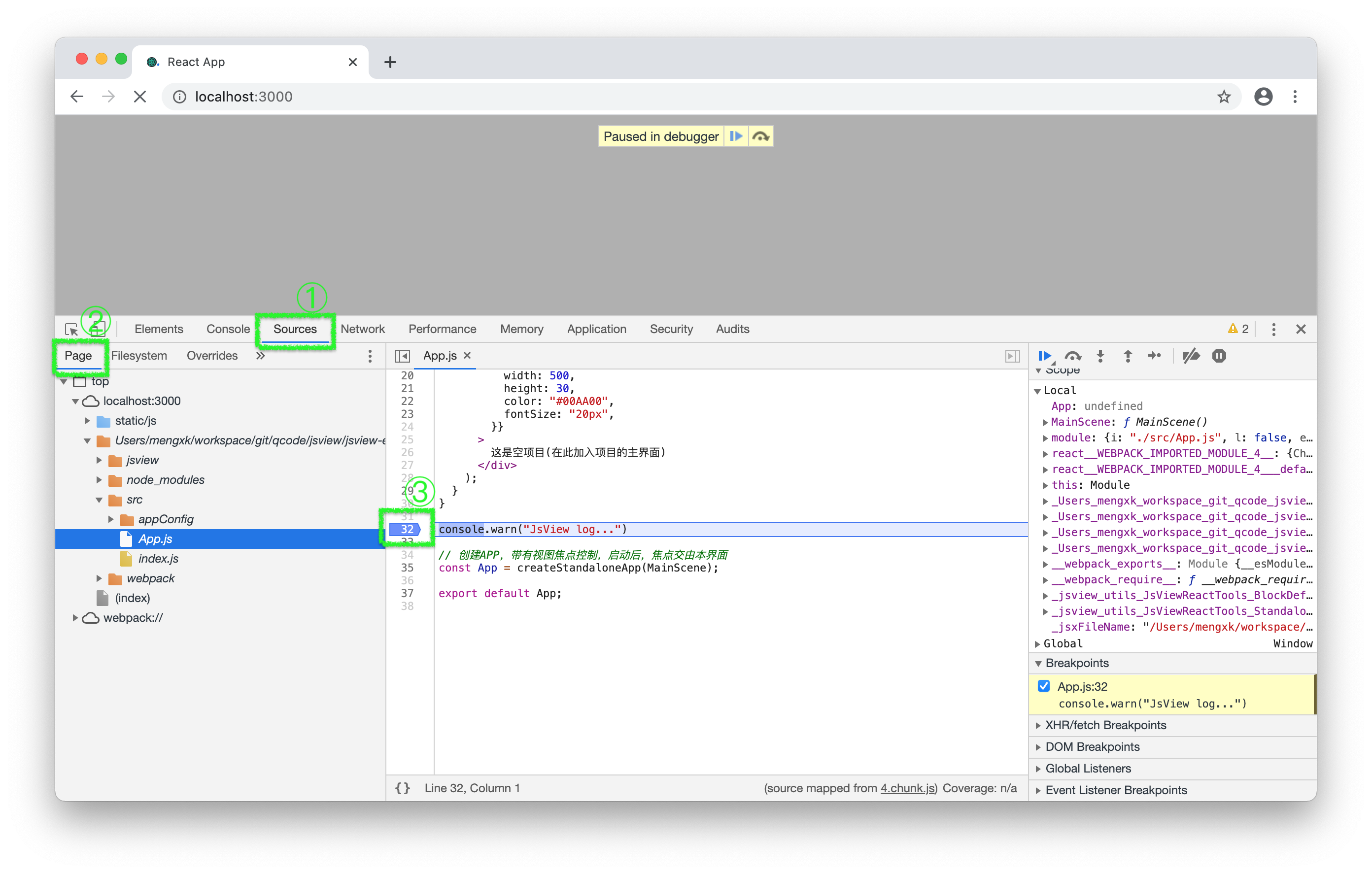 JsView的JS代码可以运行在网页端,也可以运行在Android端,所以调试也分为两种方式:网页端和Android端。本部分主要介绍JsView运行在网页端的调试。