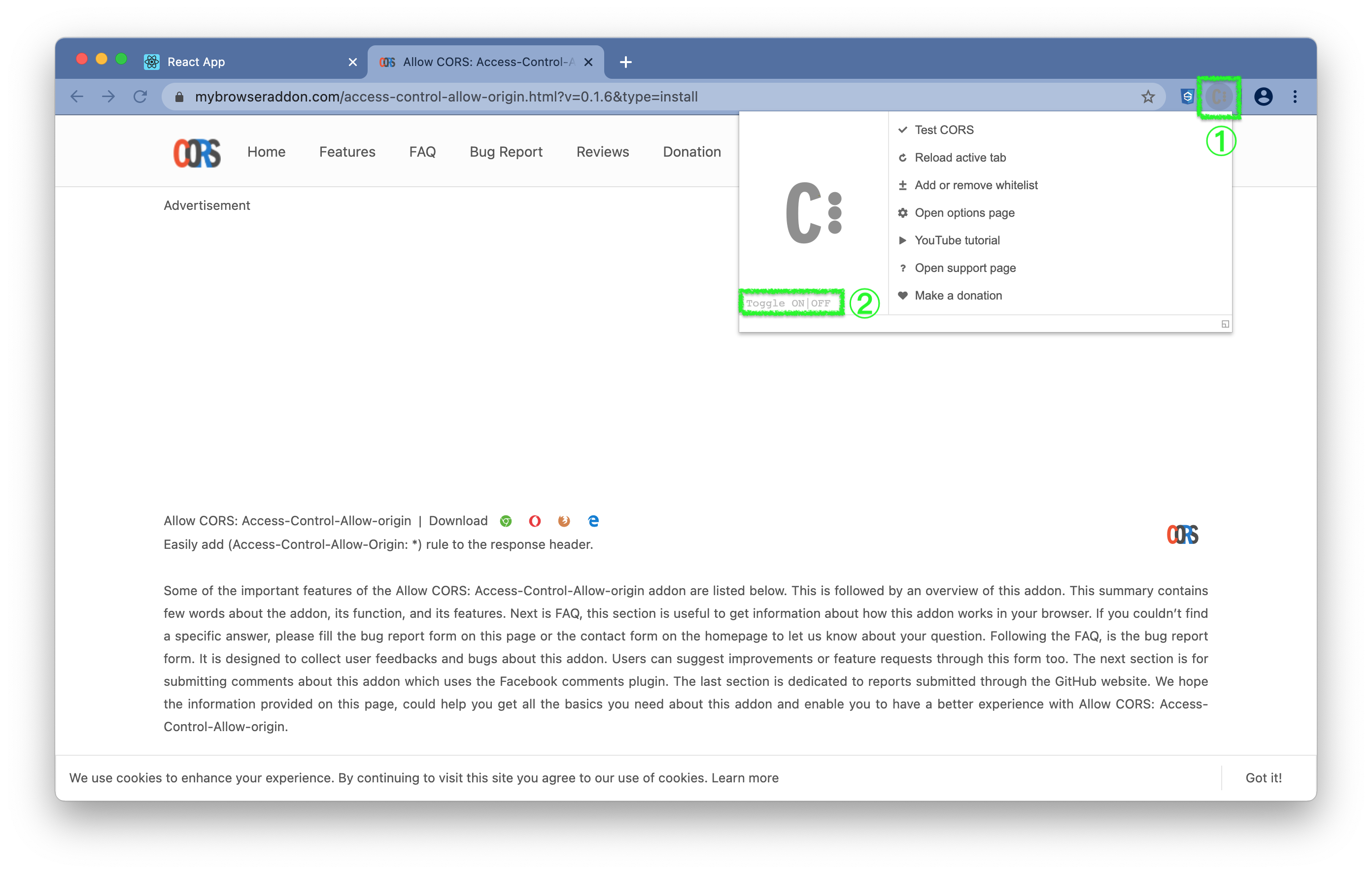 - (1) 下载Allow-CORS插件 (opens new window)。
