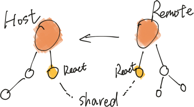- 如果希望使用集成在 Host端的模块,可以通过Shared方式,这样 Remote 端就不会进行该模块的的打包。